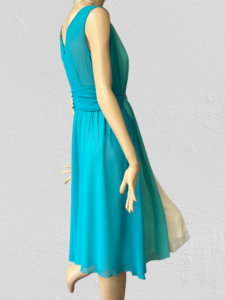 Luxusné šaty z top kolekcie šiat talianskej módnej značky Rinascimento sú nadčasovým modelom. Šaty majú nádhernú farebnú kombináciu v ktorej prevláda tyrkysový tón, odnímateľnú zlatú ozdobu v páse, zadné zapínanie na zips a pekný rozšírený strih. Sú podšité, pritom ľahučké a vzdušné.