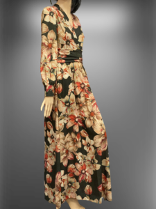 Šaty na denné nosenie sú elegantným modelom z kolekcie talianskej módnej značky Rinascimento. Sú ušité z kvalitného hrubšieho úletu jemne pretkávaného zlatým vláknom, teda sú vhodné na nosenie v chladnom období, majú veľmi príjemnú farebnú kombináciu so vzorom kvetov, prekladaný dekolt, širokú skladanú, pružnú pásovku ktorá pekne formuje postavu, riasené rukávy ukončené manžetou, širokú sukňovú časť a dve bočné vrecká. Vkusný kúsok šiat, ktorý vyzerajú výborne v kombinácii s čižmami a krátkou / dlhou / jednofarebnou bundou.