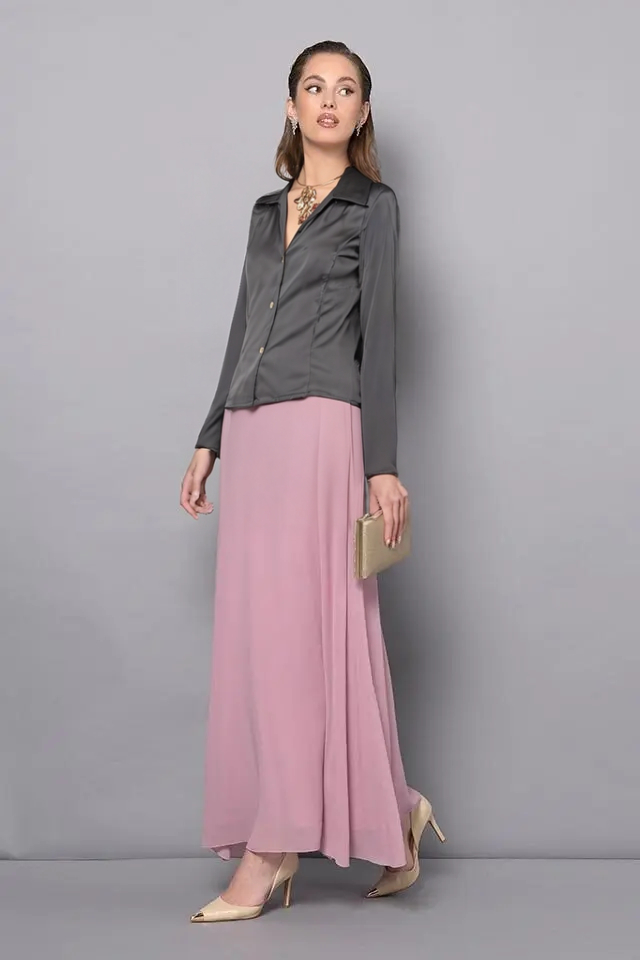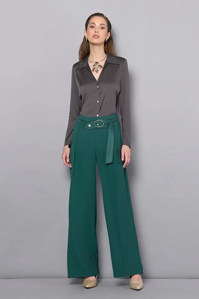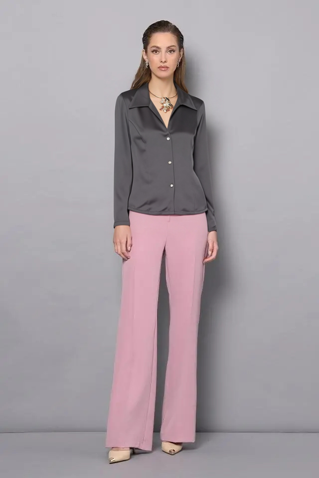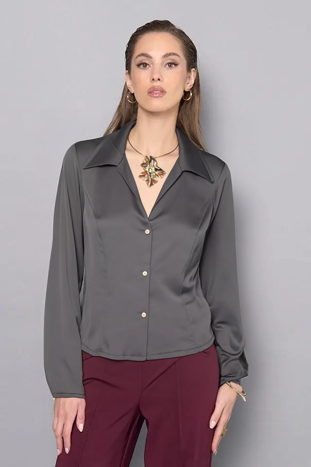 Blúzka v čiernom farebnom odtieni z kolekcie talianskej módnej značky Rinascimento je luxusným kúskom vhodným na menšie slávnostné udalosti, alebo na štýlové elegantné denné nosenie. Model ktorý sa hodí na kombinovanie s nohavicami aj sukňou je vyrobený z kvalitného mierne pružného saténu, má fazónku s golierom, slim fit strih so zapínaním na gombíky v zlatom tóne, hladký rukáv bez manžety a nádherný náhrdelník ktorý je odnímateľný.