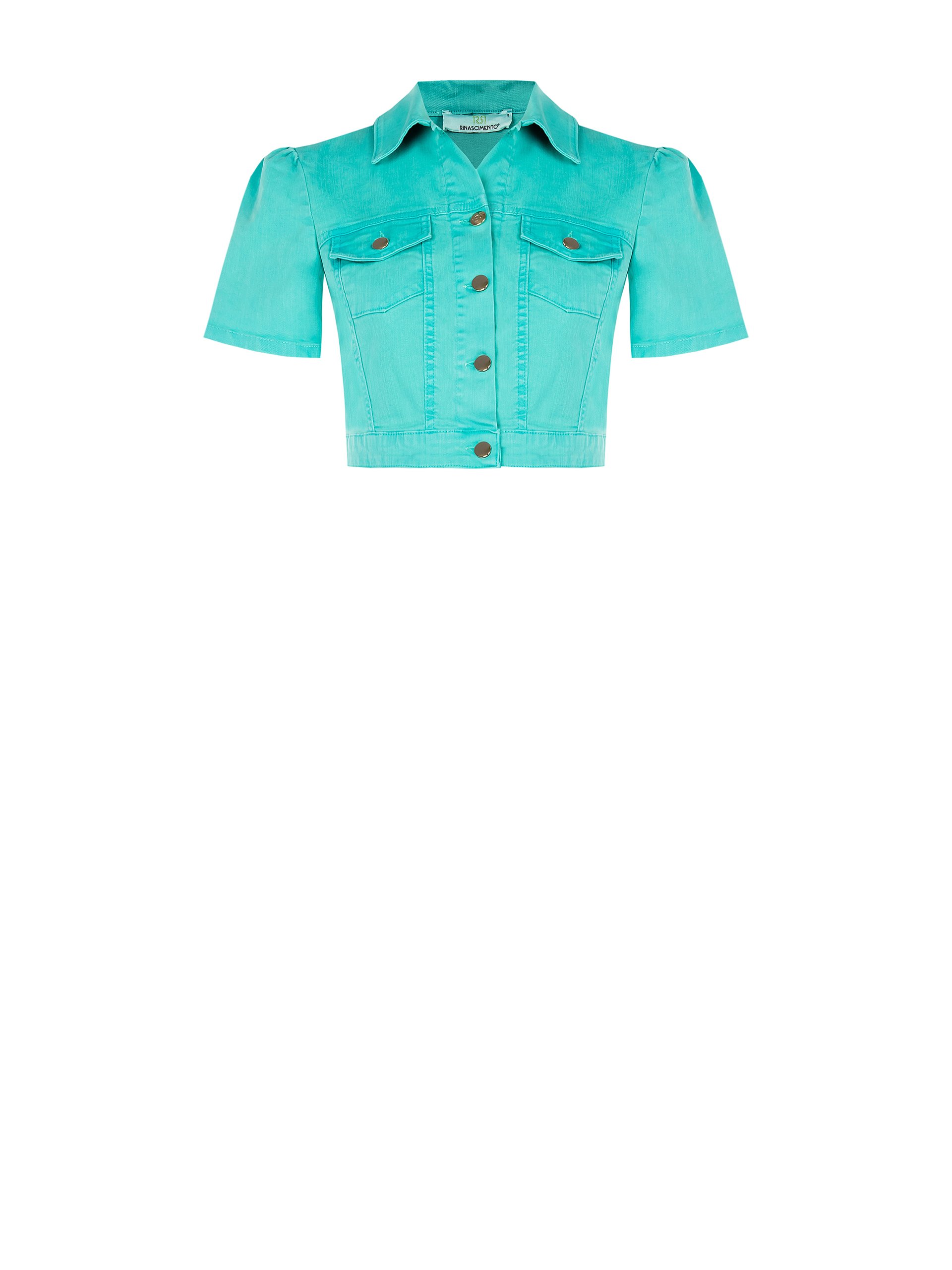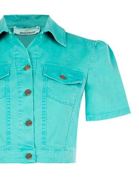 bunda s vreckami džínsová krátka tyrkysová Rinascimento