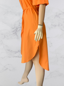 Dlhá maxi košeľa v tmavo modrom farebnom odtieni so vzorom jemných prúžkov je športovo – elegantným modelom z letnej kolekcie talianskej módnej značky Rinascimento. Košeľa má prevažne prírodný, veľmi príjemný materiál, voľný strih s možnosťou viazania na opasok, zapínanie na gombíky, spadnutý rukáv a zaujímavý detail – chrbtové sedlo s volánom. Kúsok ktorý sa dá nosiť aj samostatne, ako krátke košeľové šaty.