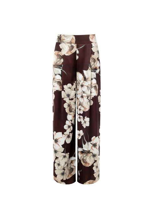 nohavice palazzo letné s kvetmi hnedé Rinascimento
