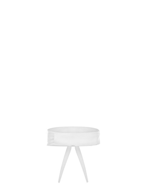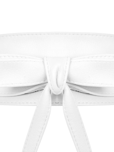 Kožený opasok z kolekcie talianskej módnej značky Rinascimento je luxusným doplnkom vhodným na oživenie denného outfitu, alebo zvýraznenie jednoduchých spoločenských šiat, topov či blúzok. Opasok je vyrobený z mäkkej a poddajnej 100 % kože v asymetrickom strihu a zavinovaciom spôsobe viazania. Má výrazný, snehovo biely farebný odtieň.