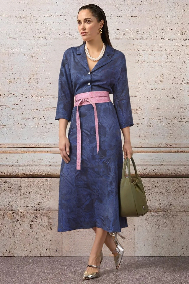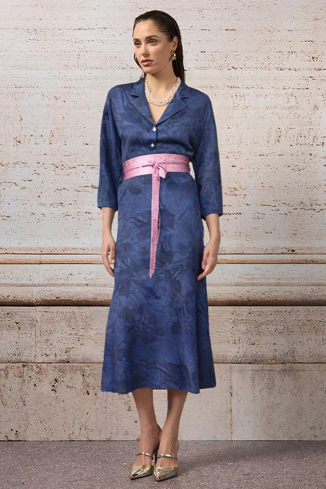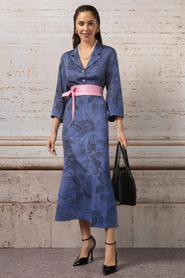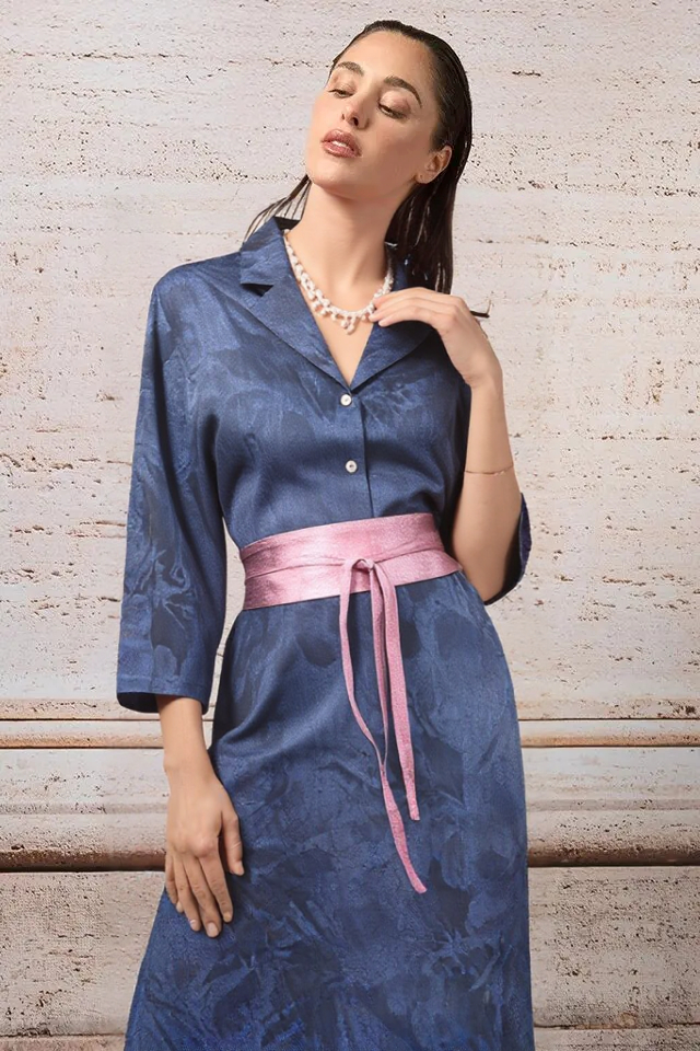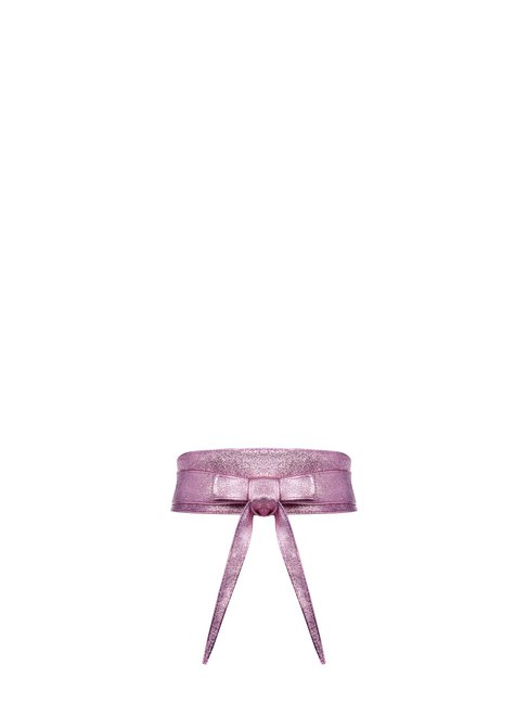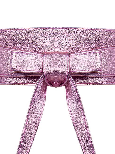 Kožený opasok z kolekcie talianskej módnej značky Rinascimento je luxusným doplnkom vhodným na oživenie denného outfitu, alebo zvýraznenie jednoduchých spoločenských šiat, topov, či blúzok. Opasok je vyrobený z mäkkej a poddajnej 100 % prírodnej kože v asymetrickom strihu a zavinovaciom spôsobe viazania. Má jemný ružový metalický farebný odtieň.