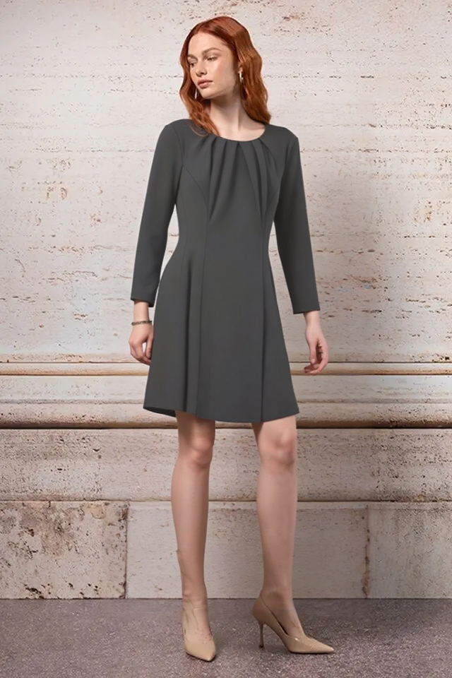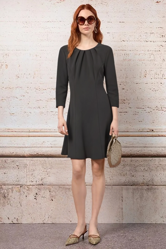 Čierne krátke šaty z kolekcie talianskej módnej značky Rinascimento sú elegantným modelom vhodným tak na štýlové denné nosenie, ako aj na menšie slávnostné udalosti ako koktailový kúsok. Šaty sú ušité z príjemného pružného materiálu, majú princes strih z dielov, okrúhly výstrih pri krku ktorý je oživený riasením, hodinkovú dĺžku rukáva a zadné zapínanie na zips.