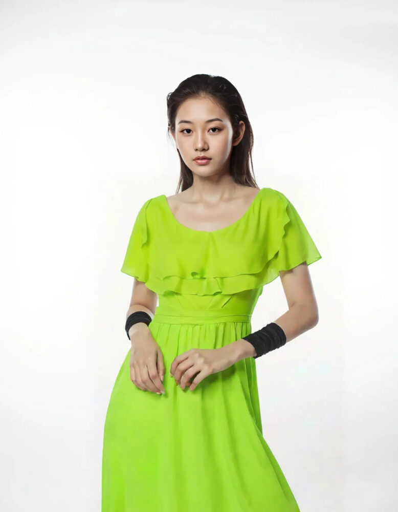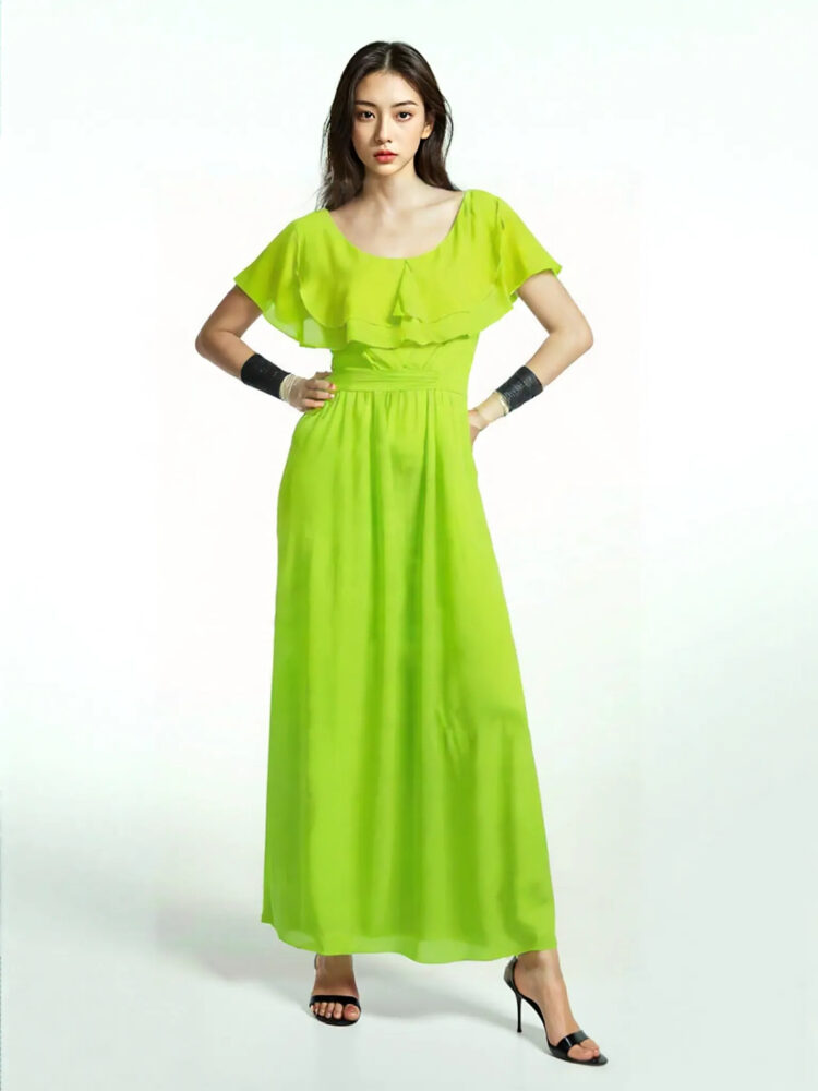 Dlhé šaty v peknej jabĺčkovo – zelenej farbe sú modelom z limitovanej kolekcie šiat, luxusnej talianskej značky Rinascimento. Šaty sú ušité z ľahkého, padavého materiálu, majú príjemnú saténovú podšívku, širokú riasenú pásovku, zadné zapínanie na zips, volánovú vrchnú časť s viazaním na chrbte. Nádherný kúsok šiat vhodných aj na spoločenské udalosti.
