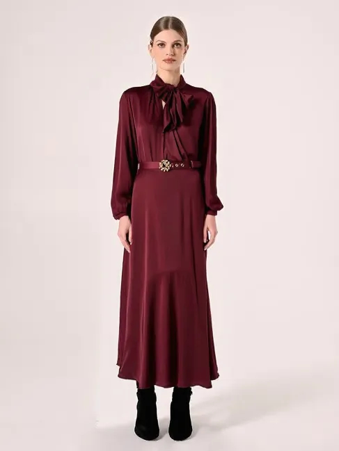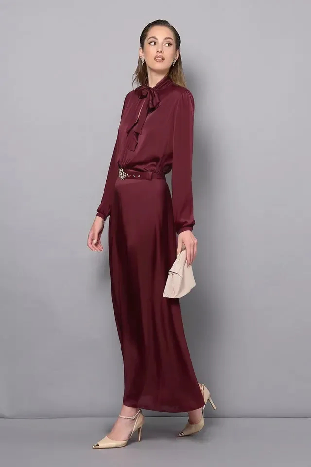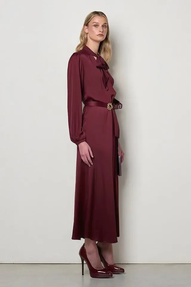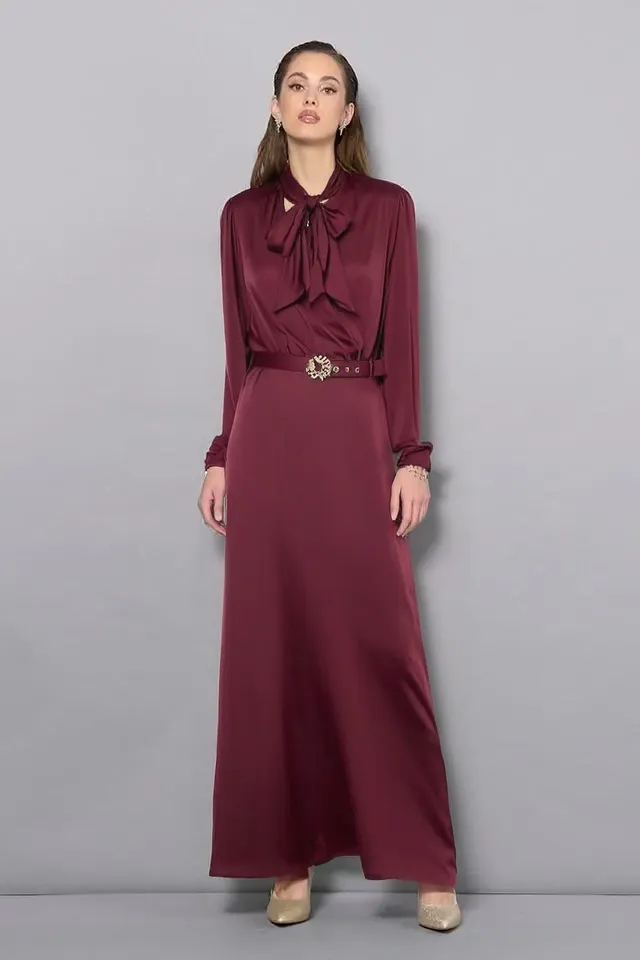 šaty s mašľou dlhé baklažánovo bordové Rinascimento