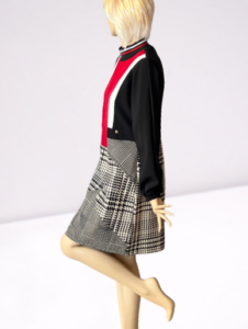 Športovo – elegantné šaty luxusnej talianskej značky Rinascimento sú vkusným modelom kombinujúcim košeľový strih s puzdrovou sukňou. Šaty sú farebne veľmi pekne ladené, sukňa má zapínanie na zips a súčasťou šiat je aj kontrastný čierny opasok. Model vhodný do práce aj na večer, podľa doplnkov ktoré zvolíme.