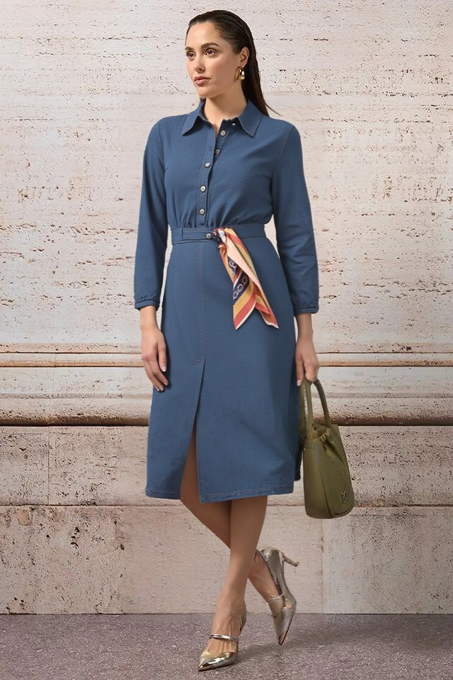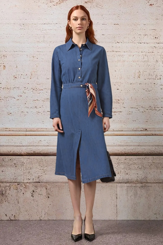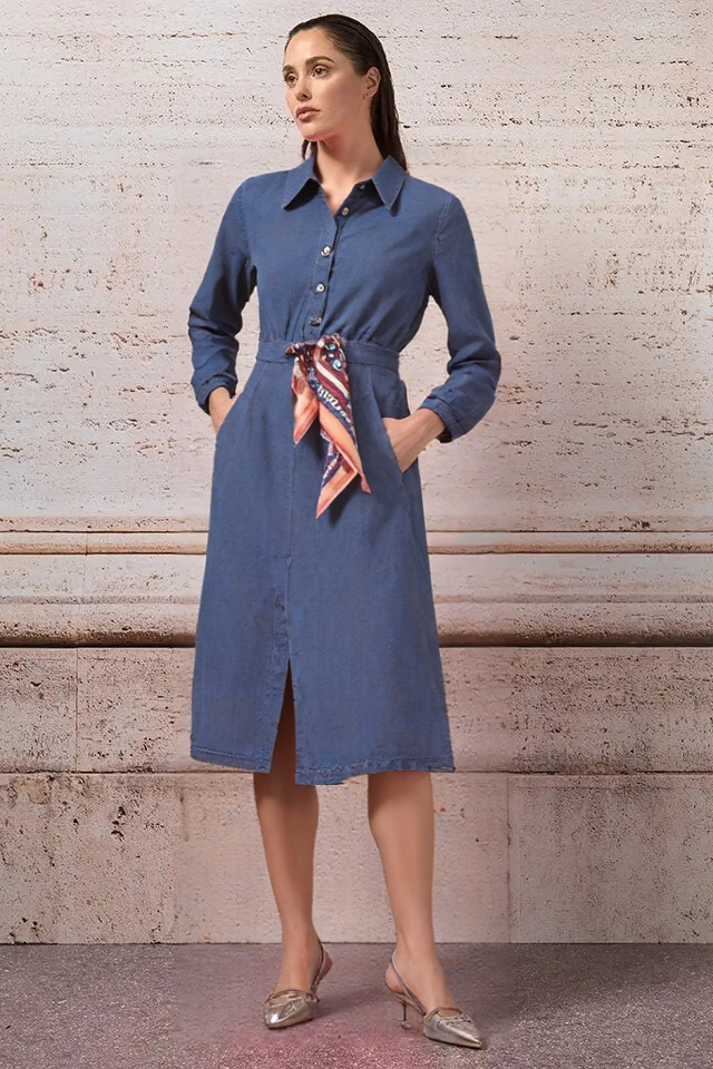 sukňa so šatkou a vreckami rifľová letná Rinascimento