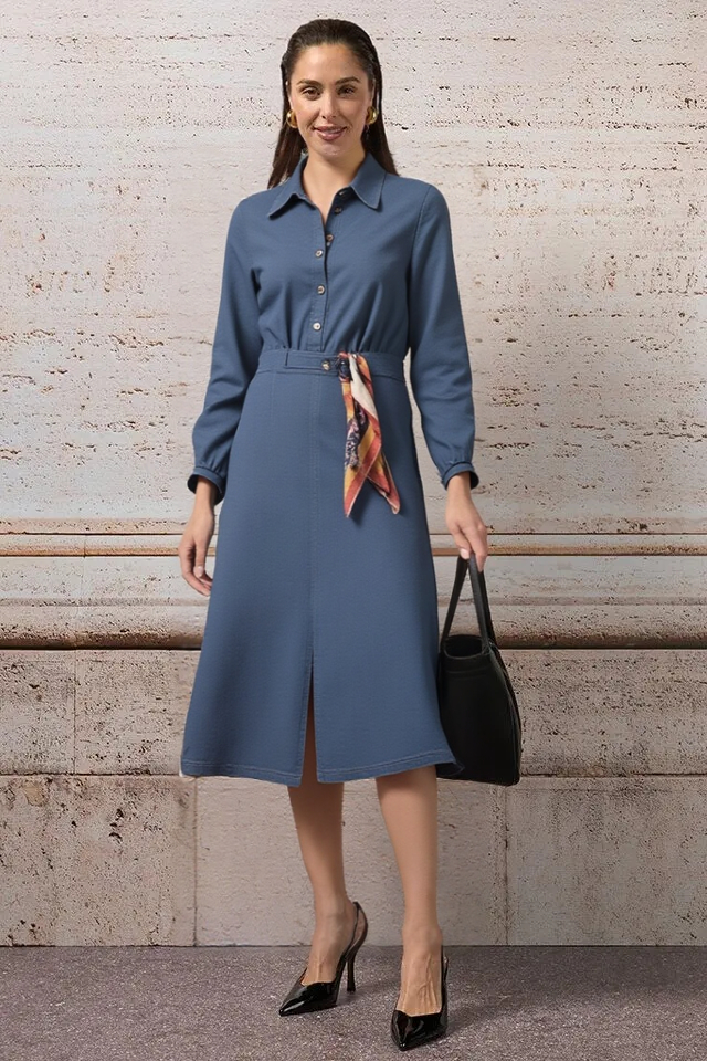 Vkusná sukňa z kolekcie talianskej módnej značky Rinascimento je pohodlným modelom určeným na denné nosenie. Sukňa je vyrobená z ľahkej , vzdušnej, bavlnenej látky v rozšírenom strihu. Má dve bočné vrecká, vyšší predný rozparok, zadné zapínanie na zips, dĺžku pod kolená a vypracovanú pásovku s pútkom, na ktorom je uviazaná odnímateľní hodvábna šatka.