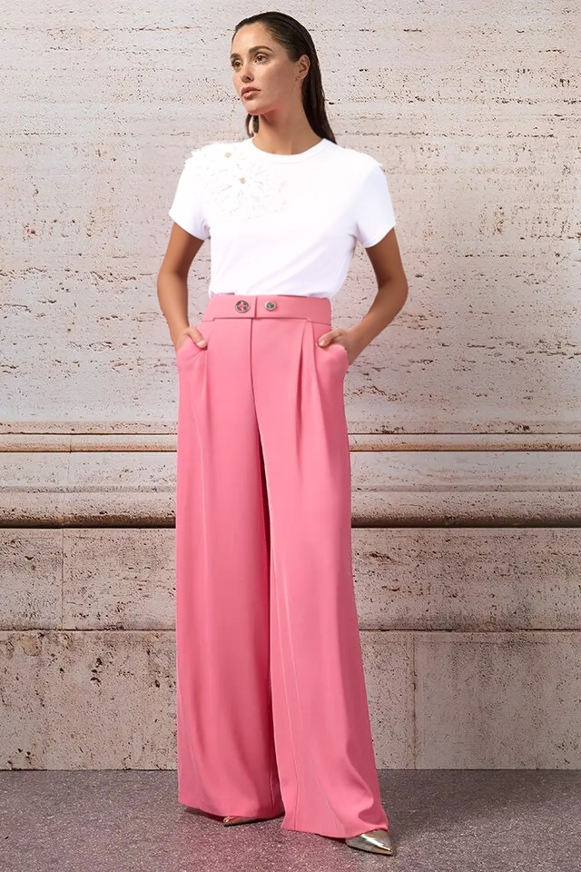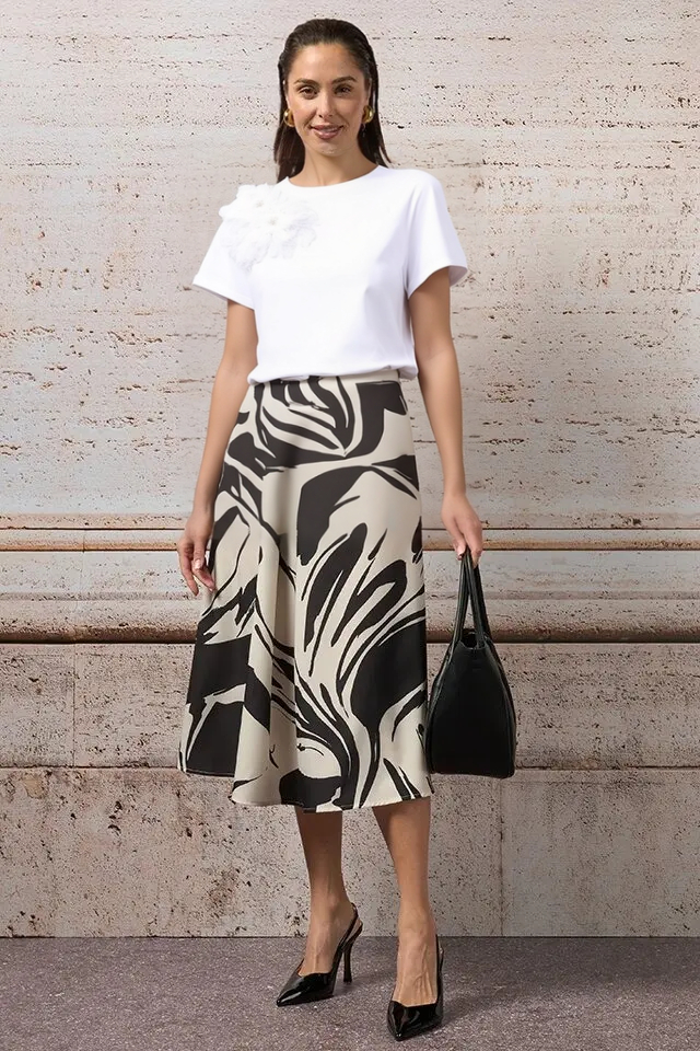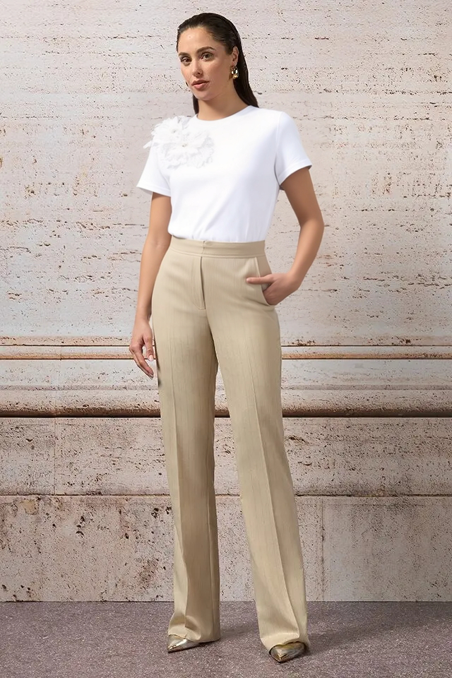 Je vyrobené z mäkkej bavlny, jeho čistá silueta sa vyznačuje klasickým okrúhlym výstrihom a krátkymi rukávmi, ktoré sú navrhnuté pre ľahký, voľný strih, ktorý zaisťuje pohodlie a všestrannosť počas celého dňa. Jeho všestrannosť z neho robí perfektný základ pre nespočetné množstvo outfitov. Skombinujte ho s džínsami pre uvoľnený, ležérny vzhľad alebo ho nasaďte pod sako, aby ste dodali ležérny nádych formálnejšiemu outfitu. Je to ideálny kúsok pre ženu, ktorá hľadá základ pre svoj ležérny vzhľad bez toho, aby obetovala nádych ženskosti.